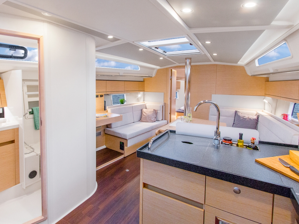 Solar panels, Fridge in the cockpit table with cooling system, Bow thruster, Automatic shower pump, Bathing platform, Teak cockpit, Cockpit table, Cockpit speakers, Cockpit shower, Swimming ladder, Fenders, Mooring ropes, Electric windlass, Cockpit cushions, Bimini, Sprayhood, Roller mainsail (2020), Self Tacking Jib (2020)