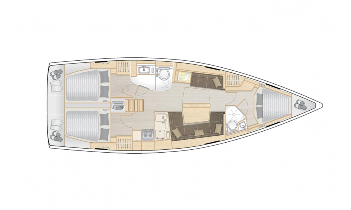 Boat documents, Pillows & Pillow-cases, Bed Sheets, Convertible saloon table, Blankets, Bed linen, Towels (2 per person)